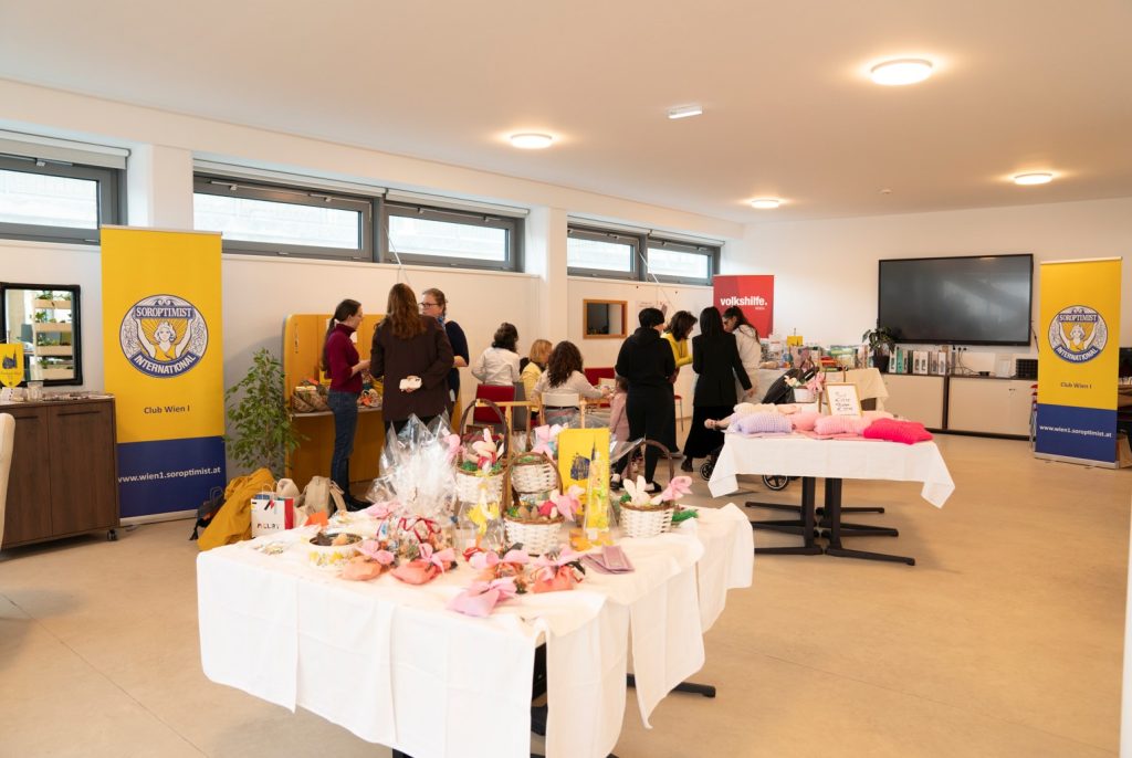 Der Ostermarkt war nicht nur eine gelungene Gelegenheit zum Feiern, sondern auch Ausdruck der besonderen Gemeinschaft, die das Wohnhaus hafen* ausmacht. Als sozial-ökologisches Wohnprojekt der Volkshilfe Wien bietet der hafen* Frauen in unterschiedlichsten Lebenssituationen ein sicheres Zuhause auf Zeit – mit Platz für Individualität und nachbarschaftliches Miteinander. Dieses Projekt unterstützen die Soroptimistinnen des Club Wien I nicht nur mit Sachspenden, sondern auch mit einer Geldspende über € 1.500.